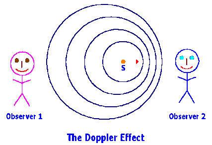| A.3.2 Explain the Doppler effect by reference to wavefront diagrams for moving-detector situations. | - Observer moves TOWARD a source, speed at which the wavefronts strike the "ear" become CLOSER - Observer moves AWAY from a source, speed at which wavefront strike become FARTHER (- for moving away, + for moving towards) |