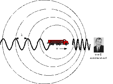 | A.3.6 Outline an example in which the Doppler effect is used to measure speed. | - Measurement of vehicle speeds. The approximation is used only when object v is much less than the transmitter, c. - Doppler shift occurs TWICE -- first for "moving observer" then "moving source" |