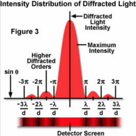 | A.4.1 Sketch the variation with angle of diffraction of the relative intensity of light diffracted at a single slit. | |