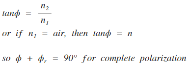 | A.6.3 State and apply Brewster's Law | Brewster's Law: The angle at which COMPLETE POLARIZATION takes place upon reflection. (Φ - polarizing angle) |