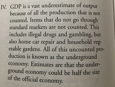| Underground economy | Anything households do for themselves and does not go through a market |