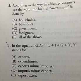 | What are the 4 expenditures? | Consumer, government, investment, exports & imports |
