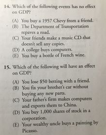 | What are other things that are not counted in the GDP? | Second hand sales Transactions that are purely financial Intermediate sales |