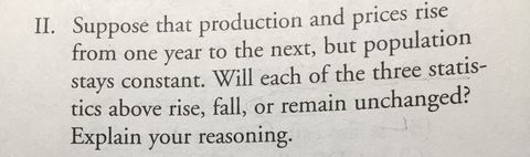 | If production and prices rise while population stays constant then all three statistics will rise. | |
