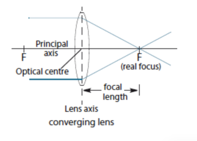 | G.2.1 Define FOCAL POINT | Point at which rays parallel to the principle axis pass through after refracting through the lens |