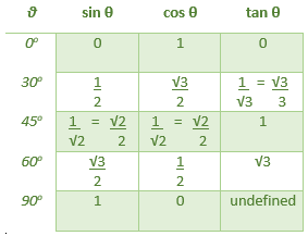 | Summary of Sine, Cosine, and Tangent angles and values | |