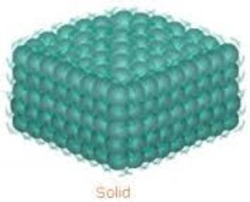 | Particles in solids | Tightly bound - fixed volume, fixed shape |