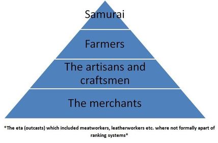 | Structure of Japanese Society | Previously, Japan had followed the feudal system with strict class rules. Japanese citizens now had the freedom to change their social class, where they lived, and their occupations. This changed the lives of people in all of the different social classes. It affected the lives of the samurai. Western style military was taking over, so they were eventually eliminated from the social hierarchy. Because of this, the government allowed them to become farmers, business owners, and trades people. |