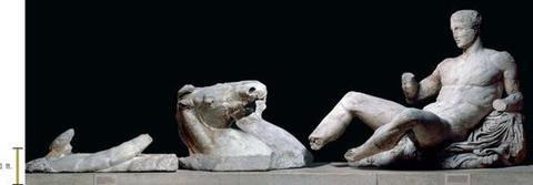 | Pg. 129- The east pediment of the Parthenon depicts the birth of Athena. At left horses of helios(sun) emerge from the pediments floor, suggesting the sun rising above the horizon at dawn. | Helios and Dionysos, from east pediment of the parthenon, Acropolis, Athens, Greeece, ca. 438, Early & High Classical |