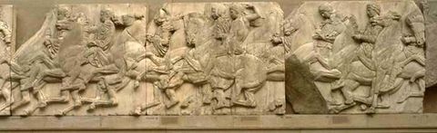 | Pg. 130 - horsemen? | Details of the panathenaic festival procession frieze?, from the pathenon, Acropolis, Athens Greece ca. 447 BCE, Early & High classical |