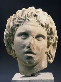 | Lysippos was the official portrait scuptor of Alexander the Great. This third - century BCE sculpture has the sharp turn of the head and thick mane of hair of Lysippos's stature of Alexander with a lance. | Head of Alexander the great, from Pella, Greece, third century BCE. Greek Hellenistic (or Late classical?) |