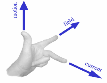 | Put your hand in Fleming's left-hand Rule position. | It should look like this... |