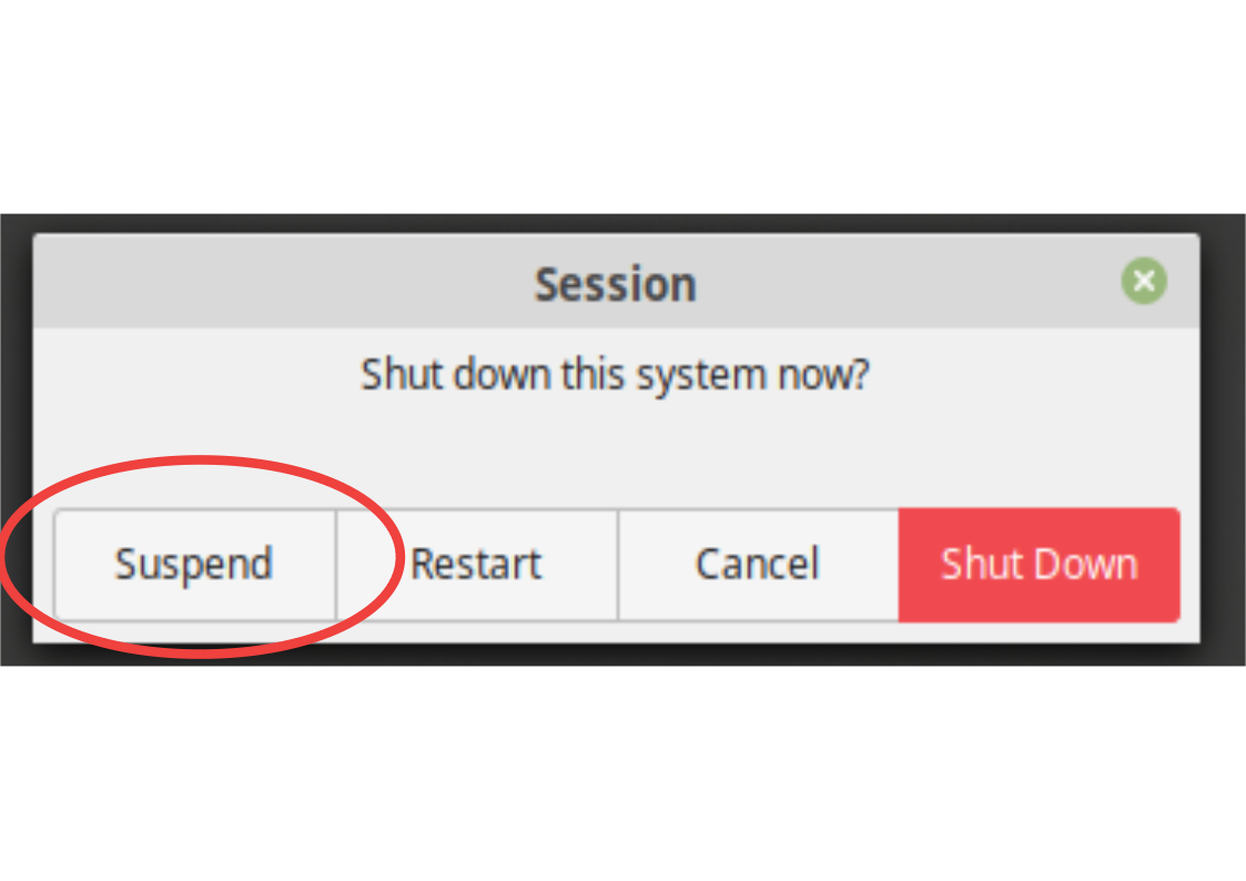 Apagar el ordenador parcialmente de modo que pasa a un estado de bajo consumo de energia. Los documentos abiertos se guardan en la memoria RAM. |