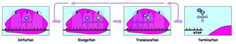 7.4.3 State the four steps translation occurs in and explain these. | Translation occurs in four main steps: Initiation: Involves the assembly of an active ribosomal complex Elongation: New amino acids are brought to the ribosome according to the codon sequence Translocation: Amino acids are translocated to a growing polypeptide chain Termination: At certain "stop" codons, translation is ended and the polypeptide is released |