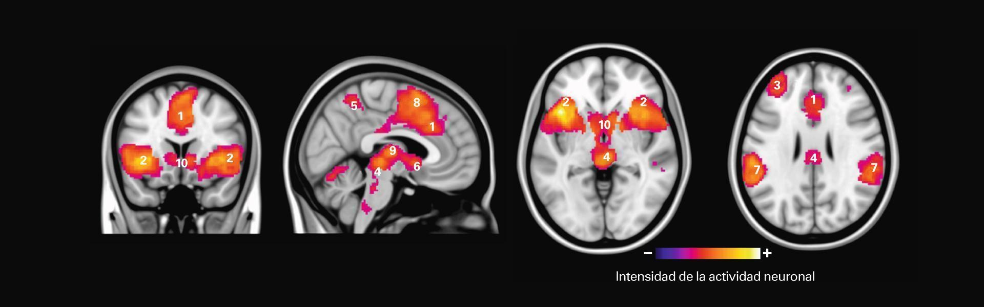 | Núcleo Accumbens | El núcleo accumbens es una estructura cerebral que forma parte de nuestro sistema de placer y recompensa. Se encarga de activar nuestra motivación y permite que la voluntad se traduzca en acción. Tiene un papel esencial en el aprendizaje y memoria, en la risa, el miedo, la agresión, las adicciones, el efecto placebo, el sexo y la ingesta de comida. |