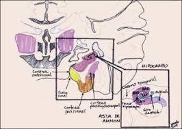 | Hipocampo | Descrito por Aranzio Se ubica en la parte interior del lóbulo temporal y va desde el hipotálamo hasta la amígdala. Está asociado a la arquicorteza, años evolutivos dando necesidades básicas a mamíferos. Afifi: 284 y 285 |