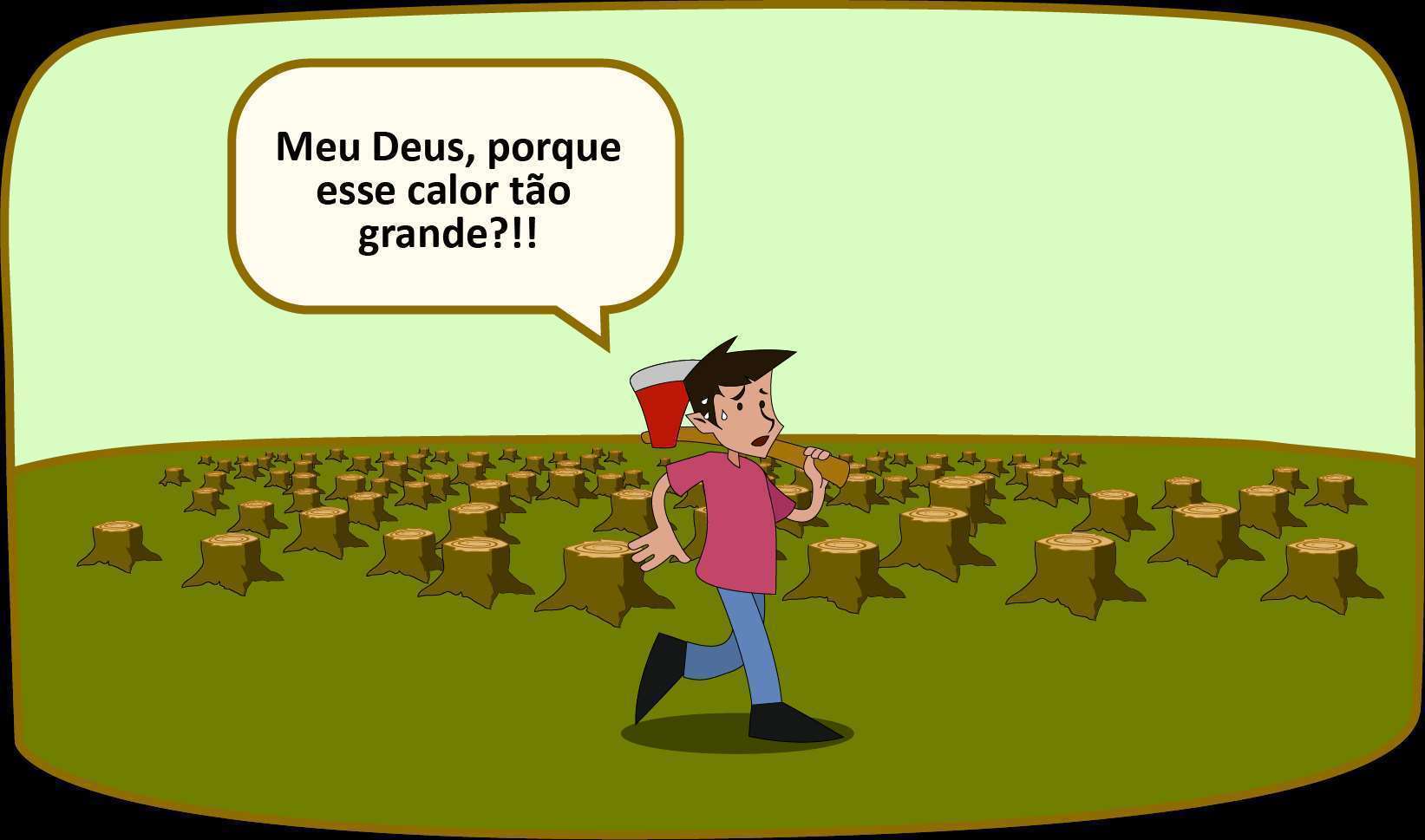 | De acordo com a imagem, qual a reflexão que o personagem faz o cuidado com o meio ambiente? | Nos faz refletir que se agíssemos de forma mais consciente não destruiríamos a nossa própria "casa" e os seres que nela habitam, pois dependemos deles para sobreviver. |