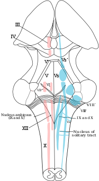 | ¿A dónde se extiende y desciende el núcleo espinal trigeminal? | El núcleo espinal trigeminal se extiende a lo largo de la médula oblongada y desciende hasta el nivel de C-3 en la médula espinal cervical. AFIFI. NEUROANATOMÍA FUNCIONAL PÁG. 83 |
