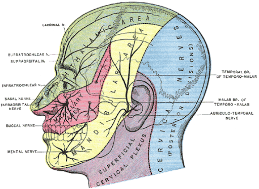 | ¿De dónde emerge el nervio trigémino? | De la mitad lateral del puente como una raíz sensitiva grande y una raíz motora más pequeña. NETTER. NEUROANATOMÍA ESENCIAL CAP 14 PÁG. 231 |