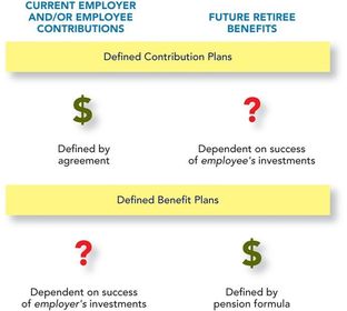 | The fundamental components of a defined benefit pension plan are: (3) | 1) The employer's obligation to pay retirement benefits in the future. 2) The plan assets set aside by the employer from which to pay the retirement benefits in the future. 3) The periodic expense of having a pension plan. |
