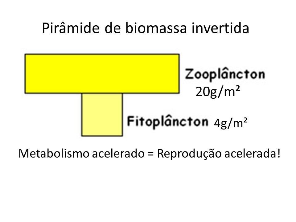 | PIRÂMIDE INVERTIDA DE BIOMASSA | Em alguns momentos, a biomassa do fitoplâncton pode ser menor do que a biomassa dos seres de outros níveis tróficos, como os zooplânctons e peixes. |