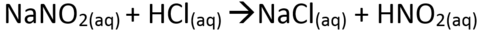 | Phenyl amine + nitrous acid + HCl T < 5\(\omicron\) | benzenediazonium ion + 2 \(H_2O\) |