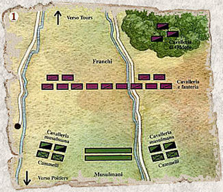 | LA BATTAGLIA DI POITIERS | Nel 732,durante la battaglia di Poitiers, Carlo Martello a capo dell'esercito di un popolo germanico bloccò il proseguimento degli arabi verso la conquista del centro Europa |