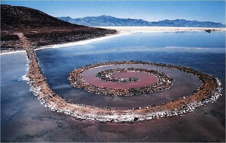 ROBERT SMITHSON SPIRAL JETTY EARTHWORK BLACKROCK, SALT CRYSTAL, AND EARTH SPIRAL 1969-1970 GREAT SALT LAKE, UTAH | |