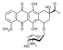 | Doxorubicin, hefur auka OH Cardiotoxískt, skammtaháð Virkara en Daunorubicin og minni eituráhrif á hjarta. NOTKUN: brjósta, lungna, legkrabba og bráð hvítblæði. Oft með öðrum lyfjum. se: Mergskemmdir, hjarta og vefskemmdir, Líposomal formúleringar hjálpa. | |