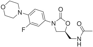 | Linezolid Efnasmíðað sýklalyf, hefur nýjan verkunarmáta og er því virkt á fjölónæma g+ sýkla td. penicillin ónæma S.pneumoniae, MRSA, Vancomycin-ónæma Enterococca VERKUNARMÁTI: Hindrar próteinmyndun með því að hindra myndun á 70S ríbósómal komplex. Linezolid binst 23S subunit af 50S subunit. Ónæmi myndast vegna breytinga á bindistað ríbósómi (ónæmir enterococcar hafa fundist) NOTAÐ ef ónæmi er vitað, sjúkrahúslungnabólga ofl sýkingar. AUKAVERKANIR: blóðbreytingar tengdar meðferðarlengd. Er veikur MAOI svo getur haft áhrif á geðþeyfð, en ekki í þeim skömmtum sem eru gefnir, en þarf að gæta ef sjúklingur er á geðlyfjum. | |
