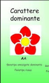 | Carattere dominante | Carattere ereditario che prevale sul carattere simile di una persona presente sul cromosoma omologo derivato dall’altro genitore. |