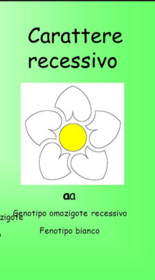 | Carattere recessivo | Carattere ereditario che rimane in genere latente e che si manifesta soltanto quando il gene che lo trasmette è identico nei cromosomi di entrambi i genitori. |