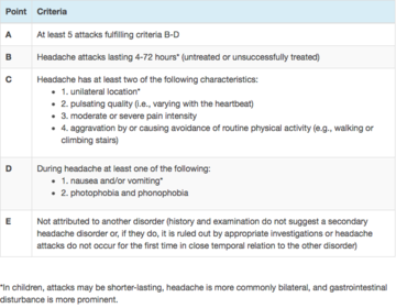 | Migraine symptoms requiring secondary referral | motor weakness double vision visual symptoms affecting only one eye poor balance decreased level of consciousness. |