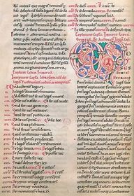 | EVANGELIAR OTONA III. (zgodnji sr. vek) -na eni strani duhovščina, na drug vojska -personifikacija: Roma, Galija, Romania, Sklavinia | |