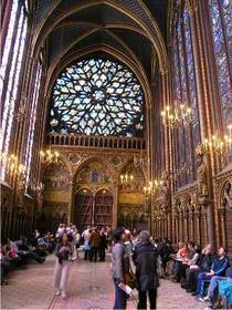 | KRALJEVA KAPELA V PARIZU (gotika) -skoraj sama stekla <-- čudovita svetloba -zelo jasno narejen podporni sistem -relikviarij <-- trnova krona iz Jeruzalema | |