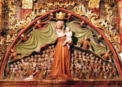 | MARIJA ZAVETNICA S PLAŠČEM (gotika) -Ptujska gora -pod Marijinim plaščem 82 figur VSEH slojev <-- varuje jih pred zlom | |