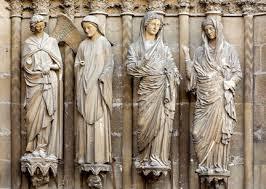 | REIMS, OZNANJENJE IN OBISKANJA (gotika) -Marijino oznanjenje Elizabete mnogo bolj realistično kot oznanjenje -plastika se začne osamosvajat | |