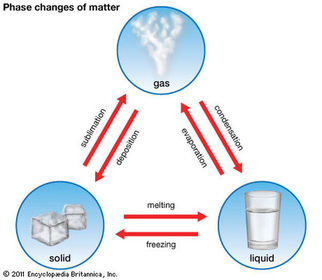| Changes of state | Substances can change from one state to another can make these changes by heating or cooling substances, ex. When water in kettle boiled water evaporates to form steam also called water vapor in gaseous form, when solid carbon dioxide/ dry ice warms up directly forms gas, when steam touches a cool substance and turns to water. |