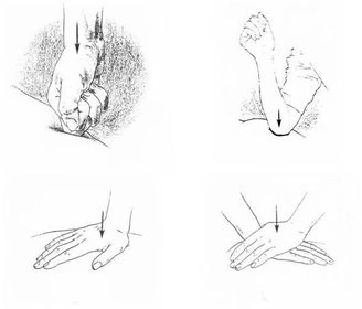 | an fa pressing method | using: thumb, root of palm or tip of elbow direction: pressing vertically force: steady, continuous procedure: light, heavy, light pressure duration: 1-2 seconds |