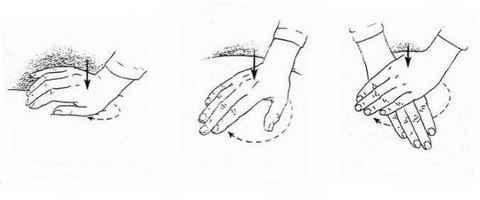 | mo fa rubbing manipulation | using: fingers or palm direction: circular rotations force: lightly and slowly (invigorate) quick rubbing (purge) procedure: rhythmic, using elbow as pivot *cream or oil often used duration: 110-112 x per minute |