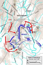 | Gettysburg | Around the town of Gettysburg, Union and Confederate soldiers clashed for three days. The battle had the most casualties and considered the turning point of the war. |