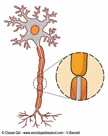 La mielina es una sustancia compuesta de proteínas y grasas que rodea el axón de las neuronas y que es imprescindible para permitir que el impulso eléctrico viaje a través de este a la velocidad correcta. |