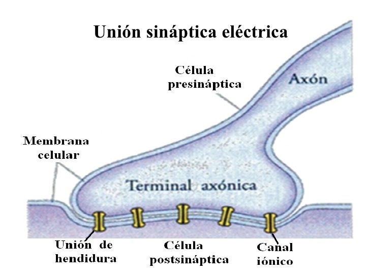 | 14.- SINAPSIS ELÉCTRICA | Es una sinapsis en la que la transmisión entre la 1ra NEURONA y la segunda no se produce por la secreción de un NEUTRANSMISOR, sino por el paso de iones de una célula a otra a través de uniones gap. |