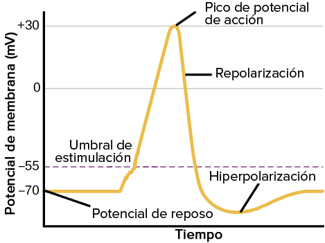 | 21.- POTENCIAL DE ACCIÓN | Onda o descarga eléctrica que surge del conjunto al conjunto de cambios que sufre la membrana neuronal debido a las variaciones eléctricas y la relación entre el medio externo e interno de la neurona. |