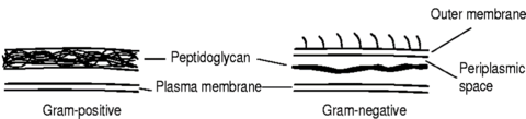 | what extra layers does gram negative have than gram positive? | gram negative=has an additional outer membrane containing lipopolysacchardies another layer of polysaccharide or protien making up a capsule or slime layer layers external to the outer membrane referred to as the cell envelope. |