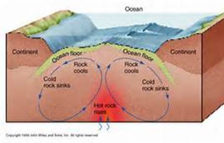 | Hess's Theory | Sea Floor Spreading: The process of the formation of new oceanic crust created at midocean ridges as older crust moves away. |