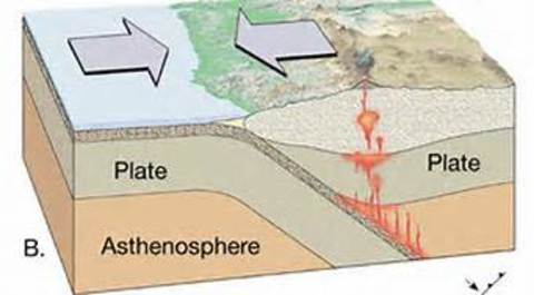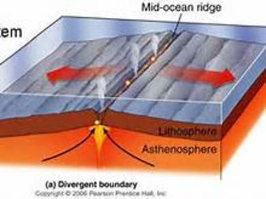 | How was the Midatlantic ridge formed? | Divergent plates separated, magma poured out and pushed the continents opposing ways. |
