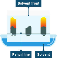 explain the process of doing and setting up a paper chromatography experiment? | . A spot of the mixture is placed near the bottom of a piece of chromatography paper and the paper is then placed upright in a solvent. As the solvent soaks up the paper, it carries the mixtures with it. Different components of the mixture will move at different rates. This separates the mixture out. |