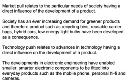 | Explain what is meant by the term market pull, technology push. | |