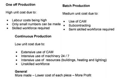 | Explain how the scale of production affects the cost of the product. | |
